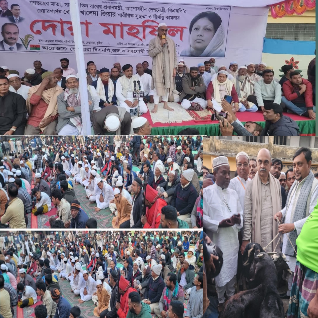 সাবেক তিনবারের দেশনেত্রী ও আপোষহীন দেশ নেত্রী বেগম খালেদা জিয়ার সুস্থতা ও দীর্ঘায়ু কামনায়, ৫ ডিসেম্বর ২০২৫ ইং ভেড়ামারা সরকারি পাইলট উচ্চ বিদ্যালয় মাঠে, গণতন্ত্রের মাতা সাবেক তিনবারের প্রধানমন্ত্রী আপসহীন দেশনেত্রী বিএনপির চেয়ারপার্সন বেগম খালেদা জিয়ার শারীরিক সুস্থতা ও দীর্ঘায়ু কামনায় দোয়া মাহাফিল অনুষ্ঠিত।