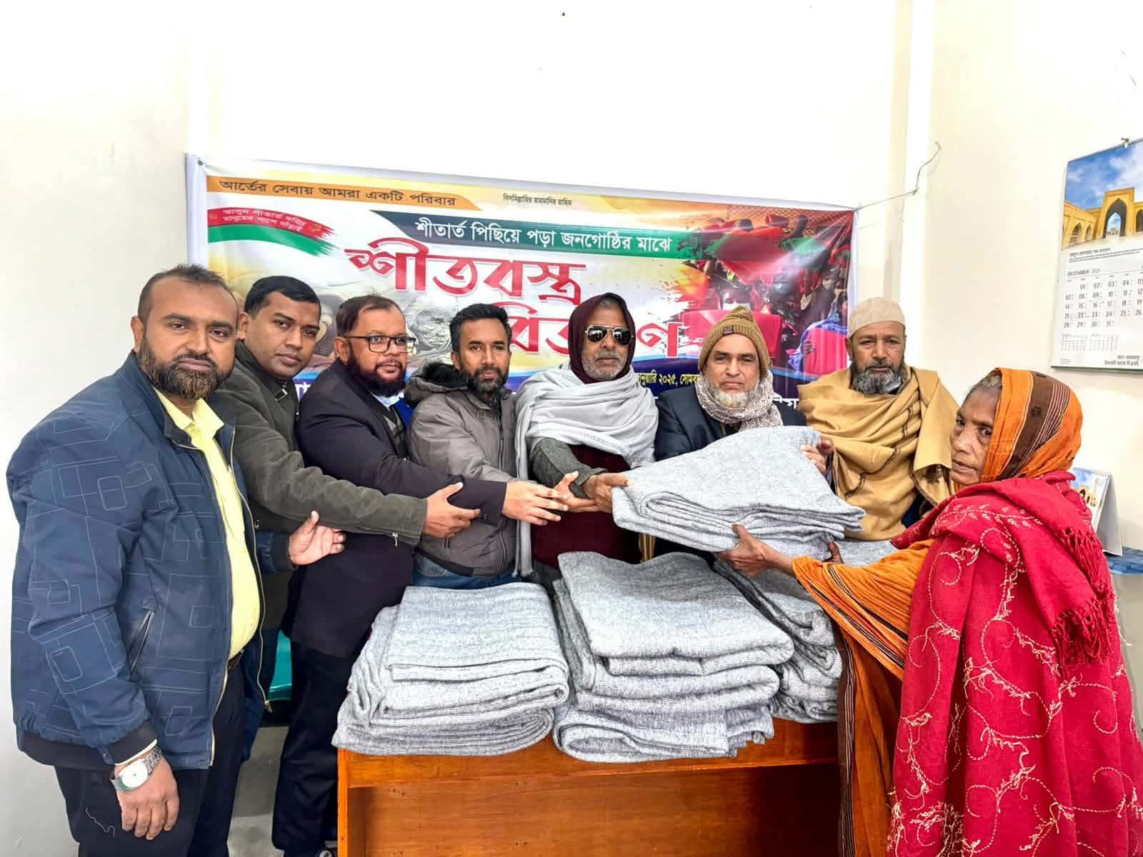 শীতে যবুথবু হয়ে কাঁপছে অসহায় শীতার্ত মানুষেরা। হাঁড় কাঁপানো শীতে জীবন যেন উষ্টাগত। এই সব শীতার্ত অসহায় পরিবারের মাঝে কম্বল বিতরন করে পাশে দাঁড়িয়েছে কুষ্টিয়ার ভেড়ামারার সামাজিক ও মানবিক সংগঠন শিশু তাহমিদ ফাউন্ডেশন। আজ ০৫/০১/২৬ ইং সোমবার দুপুর ১২টায় পশু হাসপাতাল সংলগ্ন রেহেনা এন্টারপ্রাইজ অফিসে এই অনুষ্ঠানের আয়োজন করা হয়। ফাউন্ডেশনের চেয়ারম্যান ও ভেড়ামারা ল্যাব এইড ডায়গনষ্টিক সেন্টার এন্ড ডক্টরস পয়েন্টে’র ব্যবস্থাপনা পরিচালক সাংবাদিক শাহ্ জামাল’র সার্বিক তত্বাবধায়নে অনুষ্টিত কম্বল বিতরন অনুষ্ঠানে আমন্ত্রিত অতিথি ছিলেন, ভেড়ামারা পৌর বিএনপির সাংগঠনিক সম্পাদক ও রেল বাজার বনিক সমিতির সাধারন সম্পাদক শামীম রেজা শামীম, আল আরাফাহ ইসলামী ব্যাংকের ম্যানেজার আমিনুল ইসলাম, দৈনিক যুগান্তর প্রতিনিধি রেজাউল করিম, ভেড়ামারা বিনামূল্যে চিকিৎসালয়ের উপদেষ্টা আতিয়ার রহমান মৃধা, ভেড়ামারা অনলাইন প্রেসক্লাবের সভাপতি ডাঃ কামরুল ইসলাম মনা, বাহাদুরপুর মাধ্যমিক বিদ্যালয়ের সহকারী শিক্ষক ওয়ালিউল ইসলাম ওলি, দৈনিক সমকাল প্রতিনিধি আজিজুল হাকিম, দৈনিক সংবাদ প্রতিনিধি প্রদীপ সরকার, সাপ্তাহিক কুষ্টিয়ার মুখ প্রতিনিধি শামিমুল হক শামীম, ক্বারী ওসমান প্রমুখ। অনুষ্ঠানে ৫০ টি পরিবারের মাঝে শীত নিবারনের কম্বল বিতরন করা হয়।