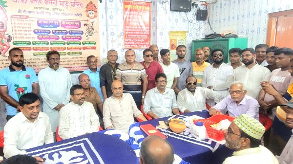 মোঃ লিটন উজ্জামান কুষ্টিয়া প্রতিনিধি : কুষ্টিয়া জেলার ভেড়ামারা উপজেলার জুনিয়াদহ ইউনিয়নে আসন্ন দুর্গাপূজা উপলক্ষে উৎসবমুখর পরিবেশে হিন্দু ধর্মাবলম্বীদের নিরাপত্তা ও সংহতি নিশ্চিত করতে মাঠে নেমেছেন বাংলাদেশ জাতীয়তাবাদী দলের (বিএনপি)